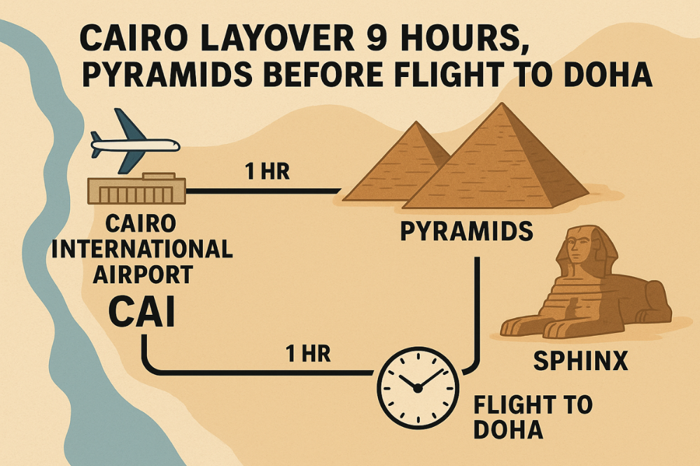 공항 라운지에서 기다리기엔 너무 멀고, 이 시간을 활용해서 '피라미드와 스핑크스만' 빠르게 다녀오는 짧은 트립을 계획했다. "입국심사부터 다시 출국수속까지 포함해서 가능한가?"를 중심으로 현실적으로 계획을 수립 중이다.