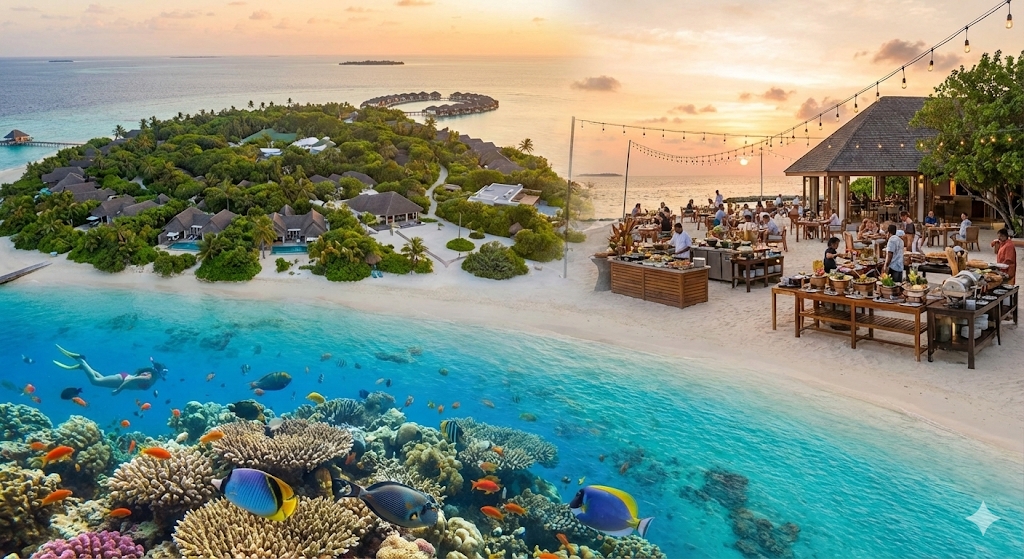 몰디브 리조트 중 하우스리프 스노클링이 잘 형성된 곳이 우선!(수중환경 매우 중요)